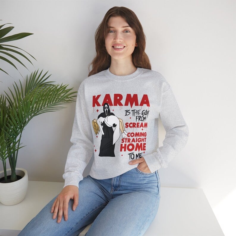 Unleash your inner scream queen with Scream Karma, the ultimate Halloween T-shirt from Taylor. Featuring a bold design and comfortable fit, this shirt is sure to be a favorite for all your spooky festivities. Make a statement and show off your love for Halloween with Scream Karma!